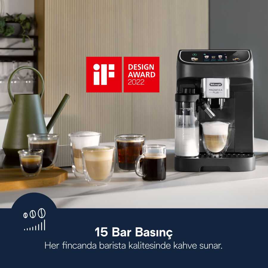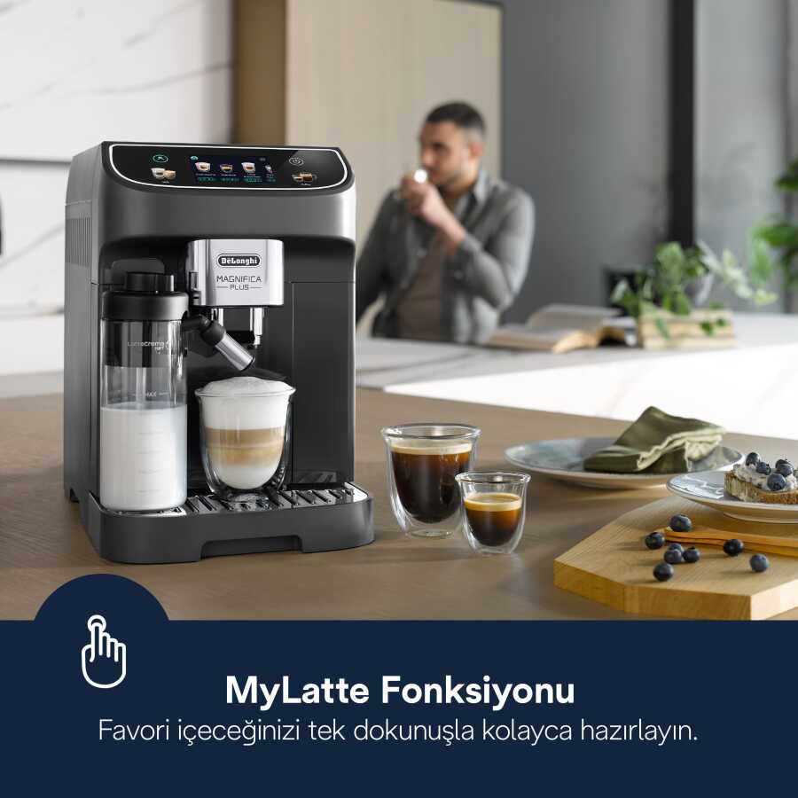 Magnifica Plus ECAM320.61.G, gelişmiş kişiselleştirme seçenekleri ve pratik bakım özellikleriyle evde konforlu bir kahve deneyimi sunar.