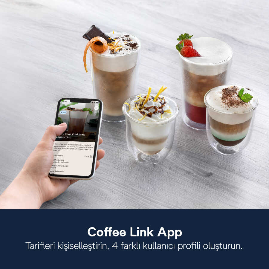 5” TFT dokunmatik ekran ve Coffee Link uygulamasıyla tamamen kişiselleştirilmiş bir kahve deneyimi sunar.